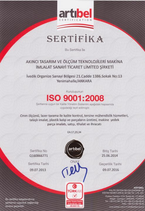 Akıncı Makina- ISO 9001 Kalite Belgesi